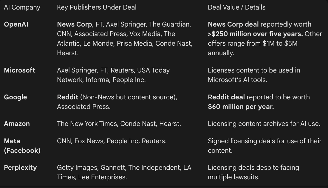 Time to update your “sue or woo” media companies v AI platforms infographic, as Meta signs deals with CNN and USA Today while The New York Times and Chicago Tribune sue the resident punchbag Perplexity.