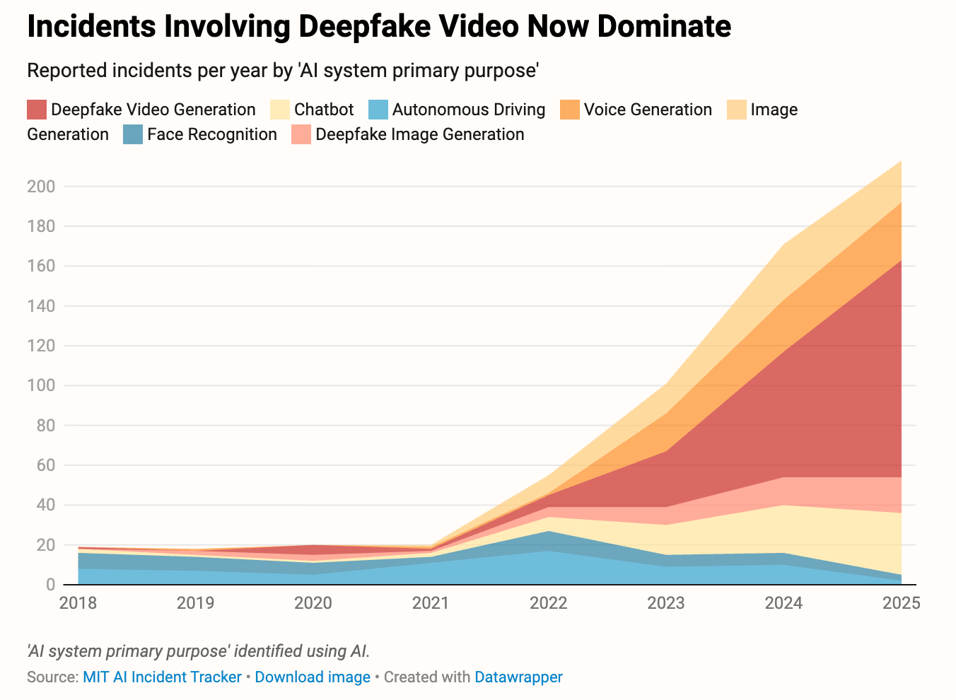 First of all, our friends at TIME have flagged a crowdsourced database for AI causing harm. This is, of course, subjective, but the trend data is alarming. The team at the MIT AI Risk Initiative tracks both news about AI misbehaving and crowdsourced data - using AI, of course. Their AI Incident Tracker is a goldmine for newsrooms in its own right.